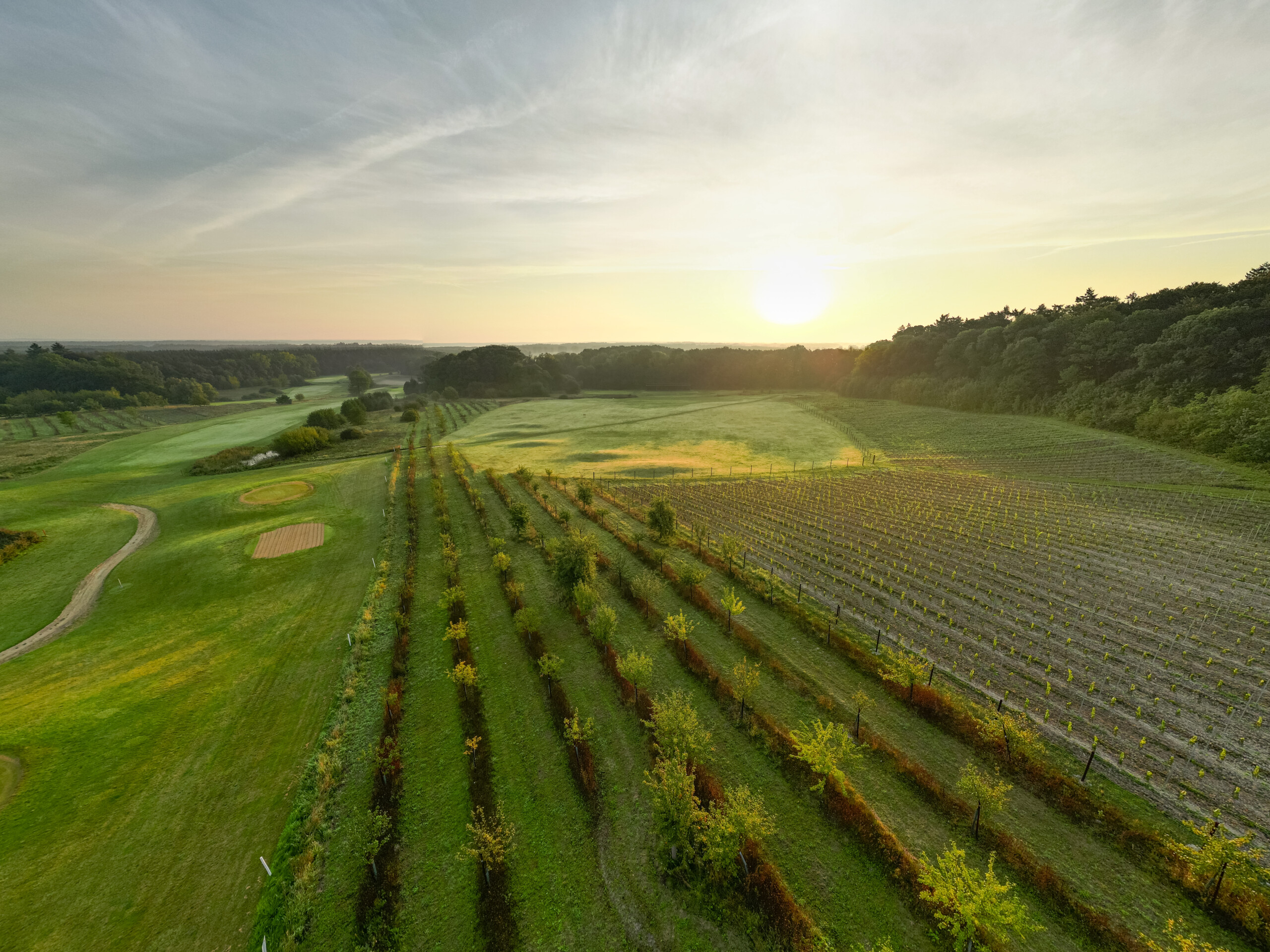 Ende Mai 2023 begann der Weinanbau mit der Pflanzung von insgesamt 3.600 Reben im Hang zwischen Schlosspark und Schloss-Golfplatz. Das Gelände verfügt über eine Kreidemoräne, die geologisch mit den Böden der Champagne in Frankreich vergleichbar ist und damit ideale Voraussetzungen für hochwertigen Weinbau sowie für die Herstellung von Schaumwein in traditioneller Flaschengärung bietet. Gepflanzt wurden die aus der Champagne importierten Sorten Chardonnay, Pinot Meunier und Pinot Noir. Ab dem vierten Standjahr wird mit einer vollständigen Ernte gerechnet, die voraussichtlich rund 4.000 Liter Wein umfasst. Das Projekt wird in Zusammenarbeit mit dem renommierten Weingut Gehring umgesetzt und steht damit für höchste Qualität und fachliche Kompetenz.